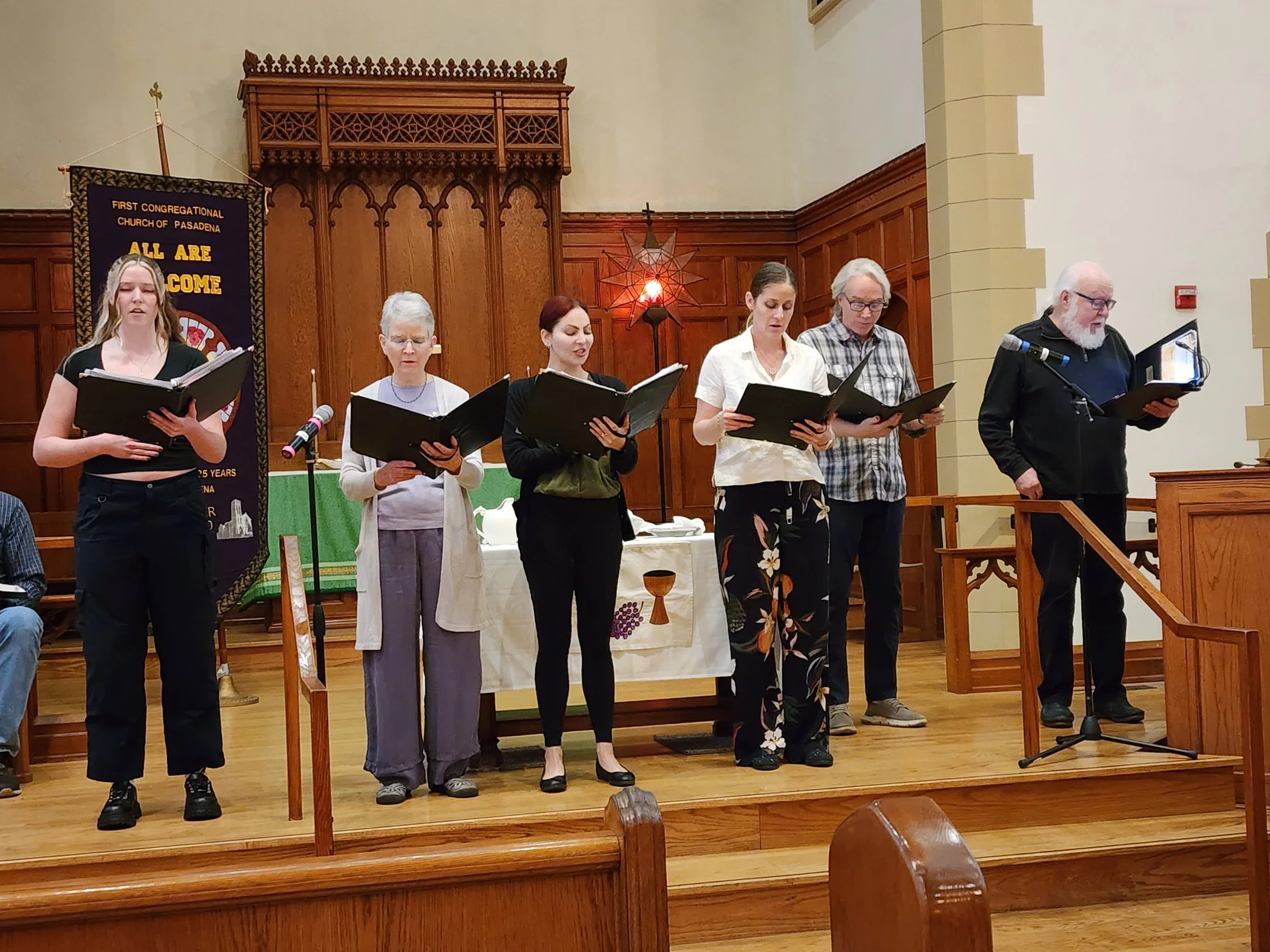 Adult Choir: Our Adult Choir sings occasionally and practices on Sunday morning before worship. We learn a variety of styles of music ranging from classical to gospel to contemporary music. In addition to them we have paid soloists who sing weekly and they are joined by many talented special guest singers and instrumentalists. Our Music Director draws from the rich abundance of musicians and singers in the Los Angeles area. On any given Sunday you might hear a classical piece, a pop song or a jazz standard. The guest instrumentalist might be: a jazz pianist, a saxophonist, a fiddler, cellist, floutist or four hands on the piano. Connie also includes the gifts and talents of folks in our church. Anyone high school age and up is welcome to contact Connie Washburn for more information about joining the adult choir.